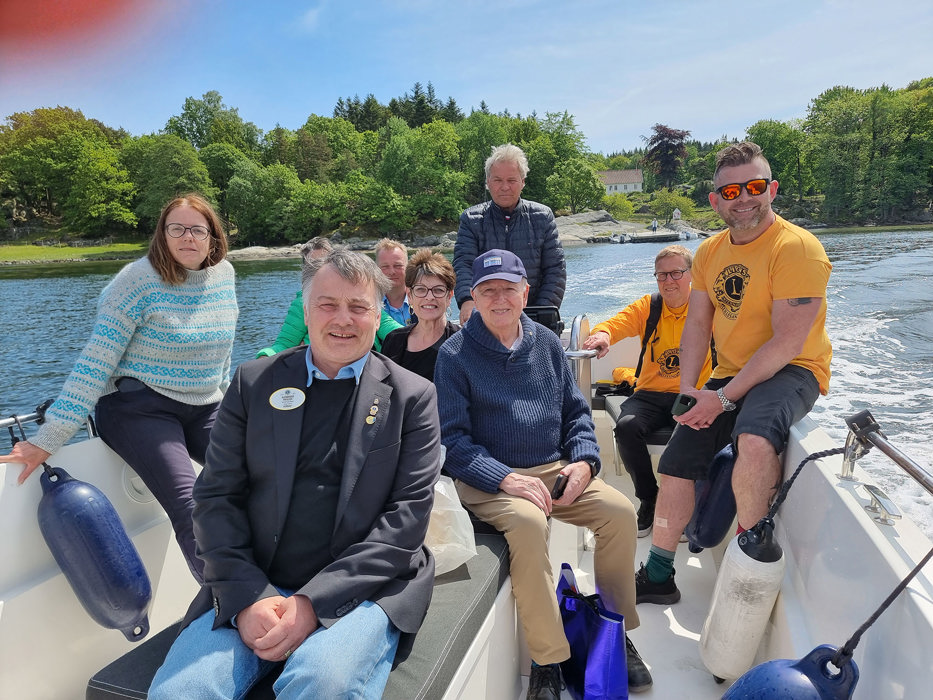 Onsdag morgen fikk presidentparet føle vinden ruske og frisk sjøsprøyt. Klubbens president stilte med sin raske båt og viste dem rundt i skjærgården før de ankom Skauerøya, et populært fritidsområde rett utenfor byen. Her har klubben pusset opp et tidligere gårdsbruk, og dette brukes nå først og fremst som leirsted for barn og unge. Huset og aktivitetene på Skauerøya har vært klubbens viktigste aktivitet i 50 år. Lionsklubben i Lillesand er så populær at klubben i perioder har ventelister for de som vil bli medlem.