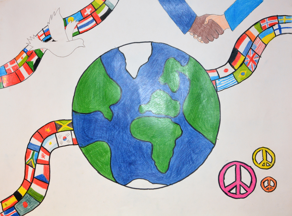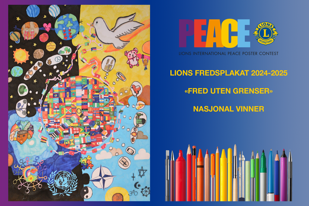 Lions fredsplakatkonkurranse har et nytt tema hvert år, og det handler alltid om fred. For høsten 2024 skulle de unge kunstnere visualisere "Fred uten grenser". I den norske finalen deltok vinnere fra alle fem Lions-distrikter og det var altså tegningen til Iben Olava som juryen mente skilte seg ut.