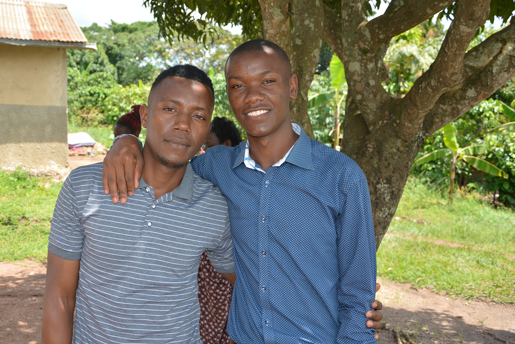 På bildet ser vi Godfrey (30) til venstre sammen med sin bror Geofrey (18). Begge har fått hjelp fra Lions Fadderbarnordning til å fullføre sin utdanning.