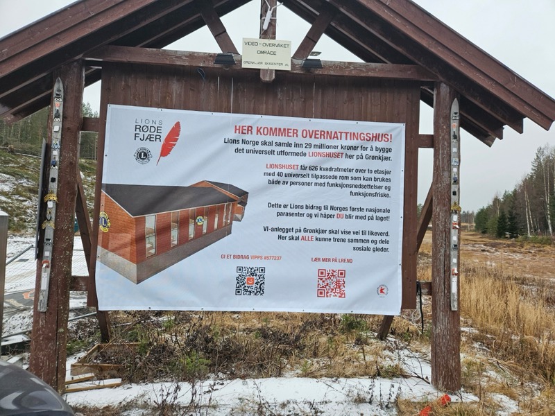 I GANG: Ved inngang til skiløypene oppfordres det til å vippse til prosjektet. Lions Røde Fjær er i gang.