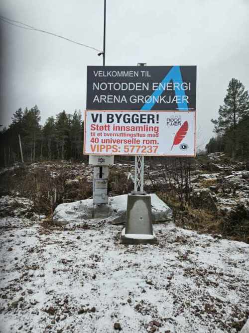 MARKERT: Ved innkjørselen til senteret er det godt markert hva Lions skal gjøre.