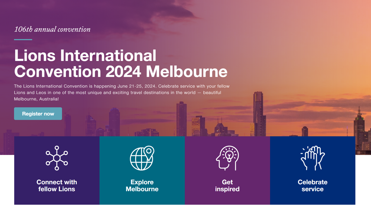 Årets internasjonale happening for Lionsmedlemmer i hele verden skjer i Melbourne, Australia siste helgen i mai. Alle medlemmer kan delta.
